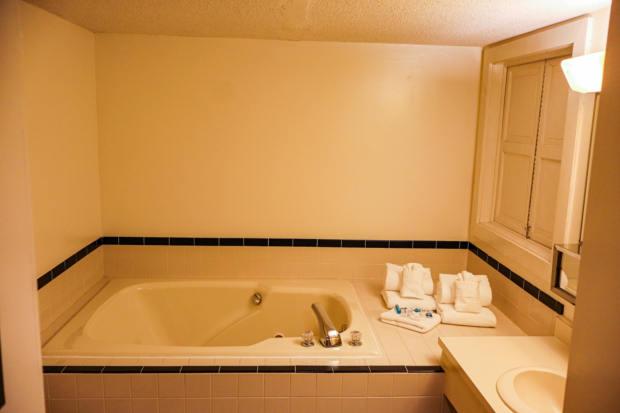 A great big room with its own seating area and larger bath.