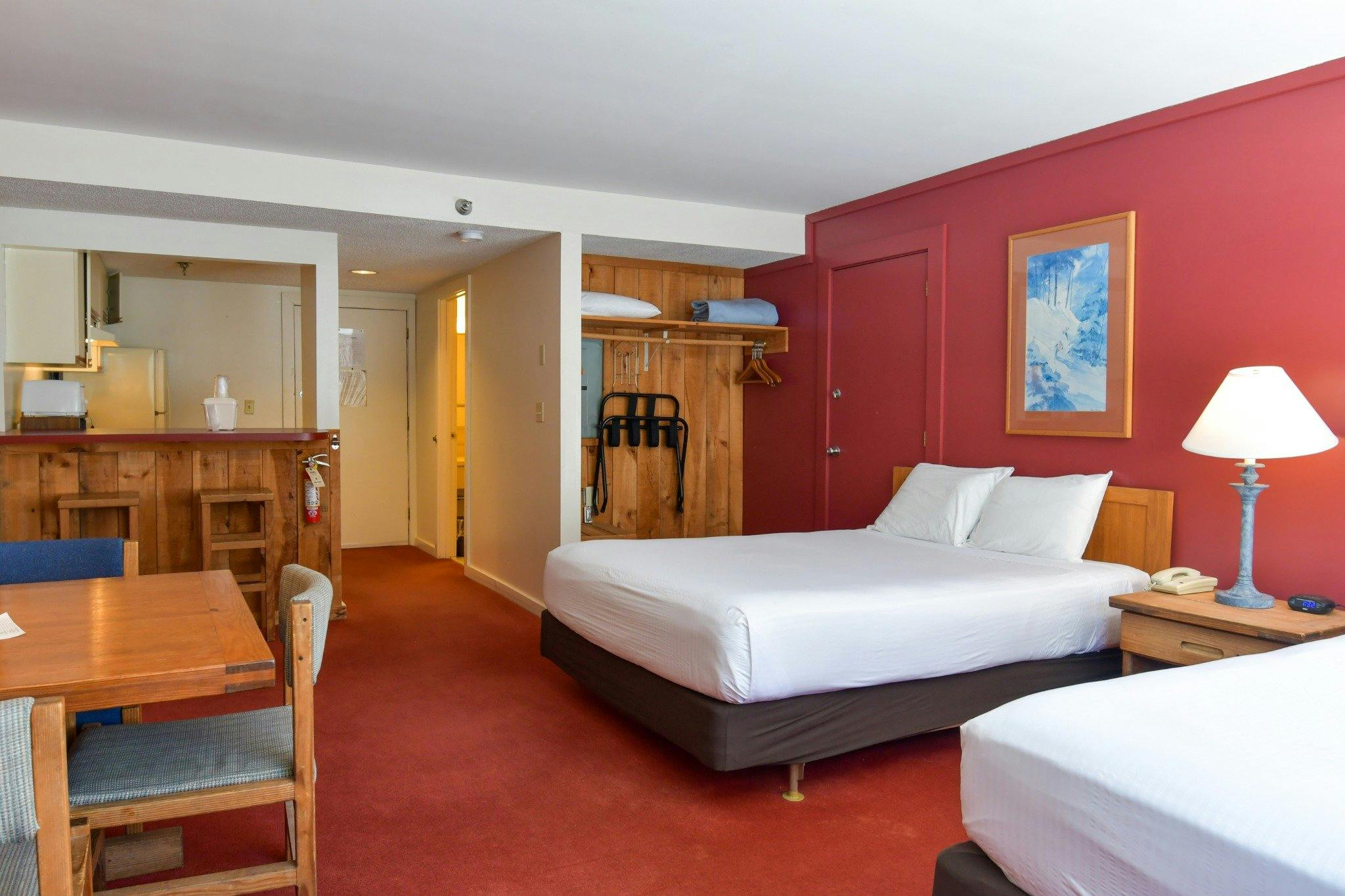 - Flat Screen Cable TV, Wet Bar, Mini-Fridge, Alarm Clock Radio, Hair Dryer, in-room controlled AC and heat